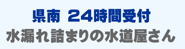 県南で早くて安い水道修理業者をお探しの方は当店までお問い合わせください。蛇口の水漏れ、トイレつまり、排水口の溢れ、パイプ修理など、県南での水道トラブルは最短15分到着です。県南は24時間受付。県南エリアは見積もり無料、出張費0円でスタッフがかけつけます。県南にお住まいの方で水廻りのお困りごとはご相談ください。